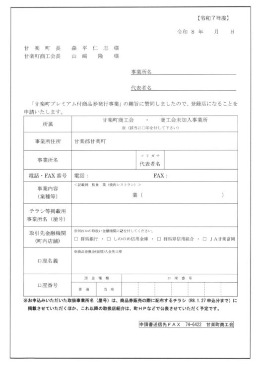 これに伴い、甘楽町商工会で登録店の募集を以下の通り開始いたします。